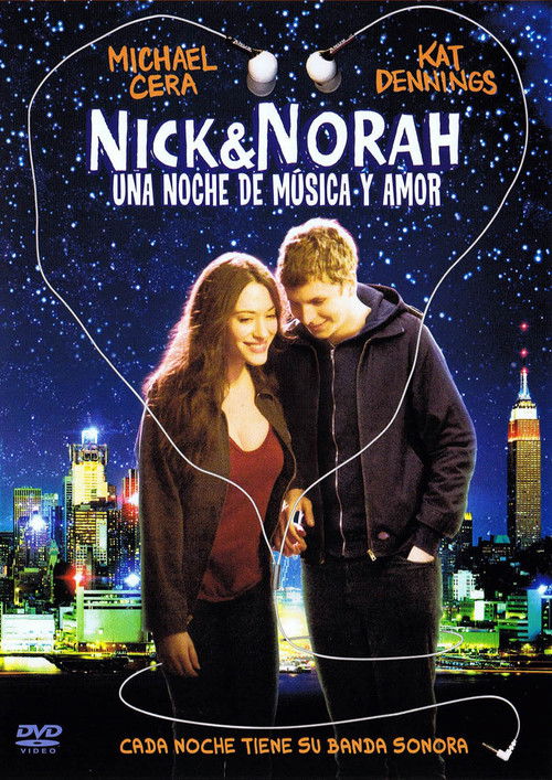 Película completa Nick y Norah: Una noche de música y amor (2008) Stream Subtítulo completo. Nick O'Leary (Michael Cera), que frecuenta los locales de música "indie" de Nueva York con su grupo, acaba de romper con su novia, y ahora apenas es poco más que un joven sensible que toca el bajo y que tiene el corazón roto. Una noche, una chica le pedirá que finja ser su novio durante cinco minutos para esquivar a una antigua pareja. Así conocerá a Norah Silverberg (Kat Dennings), con quien no parece tener nada en común, salvo su gusto por el mismo tipo de música. Juntos se embarcarán en una noche llena de aventuras...